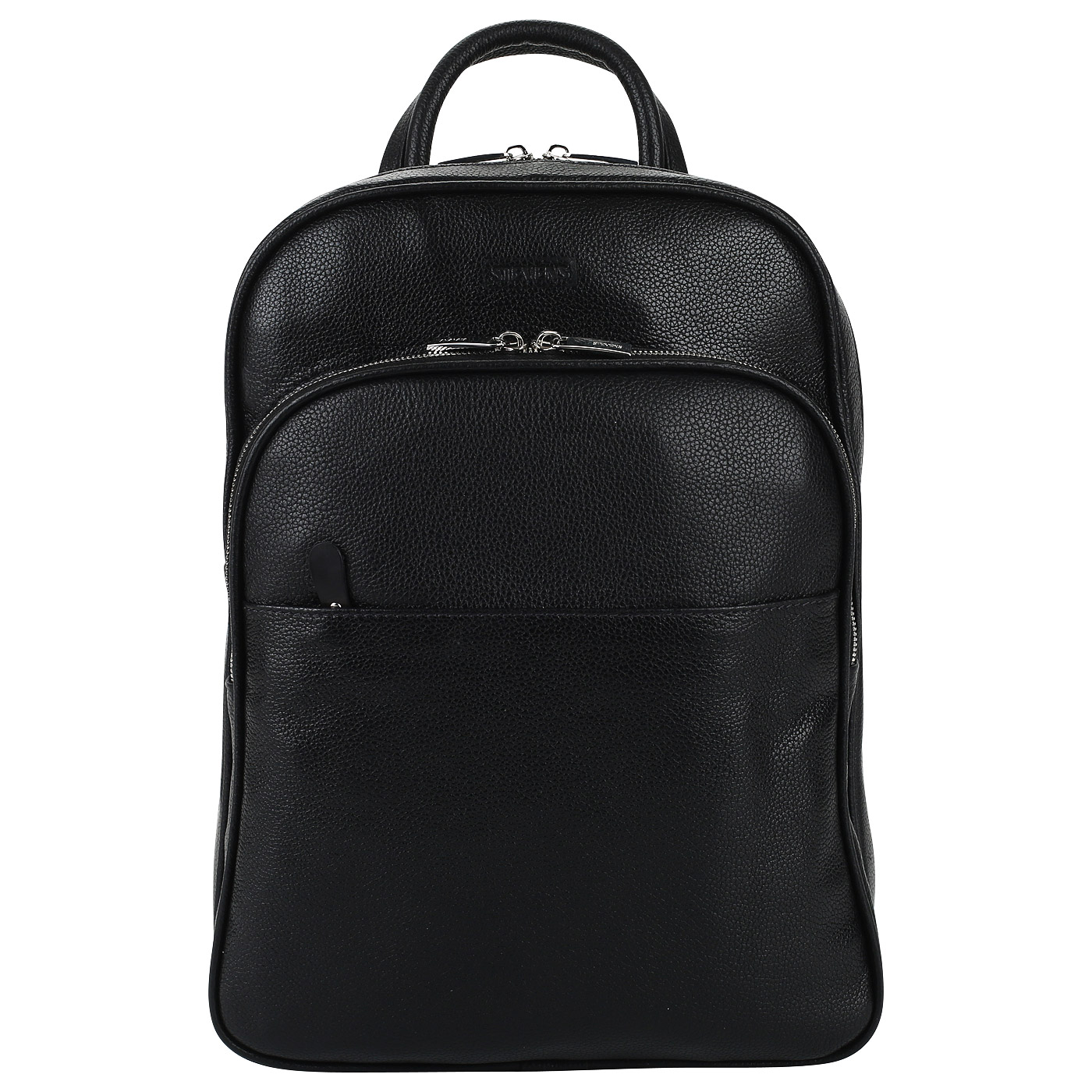 Стильный и эргономичный городской рюкзак идеально подойдет в качестве повседневного варианта для поклонников активного образа жизни, не терпящего громоздких аксессуаров. Рюкзак изготовлен из черной натуральной кожи и состоит из двух отделов на двойной молнии. В основном отделе два больших кармана — открытый и на молнии, а в дополнительном — один открытый карман. Один карман на молнии размещен на передней стенке рюкзака, другой — на задней. Плечевые лямки удобной ширины при необходимости меняют длину.