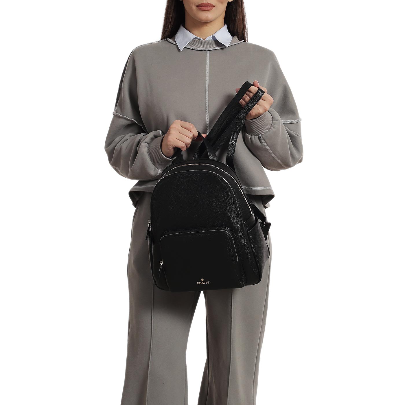Чёрный кожаный рюкзак