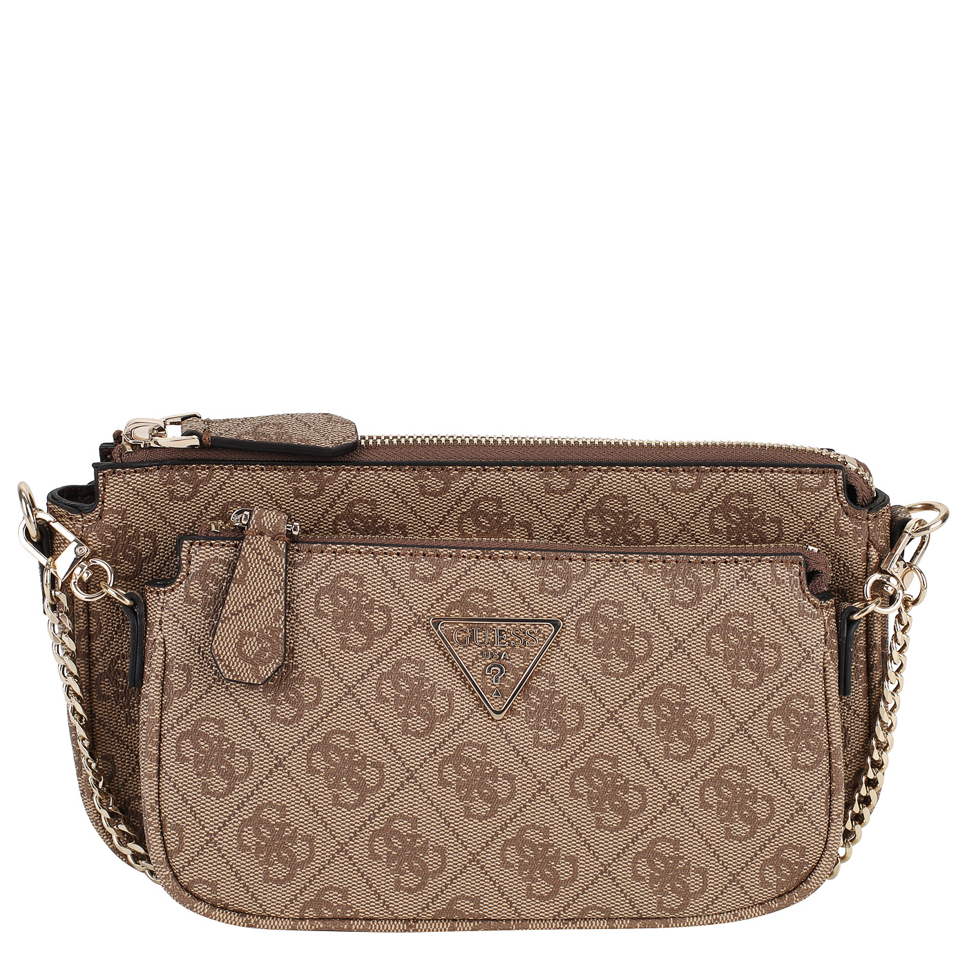 Сумка через плечо с цепочкой Guess Noelle HWBG78 79710_latte logo/brown_pc - 2000558604673 бежевый полиуретан 24 x 13,5 x 4,5 Цена 11340 руб. купить в интернет-магазине PanChemodan.ru в Москве