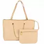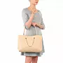 Сумка имеет длинные съемные ручки. Закрывается с помощью магнита. Внутри одно отделение, в котором расположены карман на молнии и два кармашка для мелочей. Снаружи на задней стенке карман на молнии. К сумке прилагается небольшая косметичка на молнии.